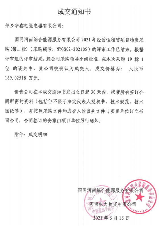 成交通知书